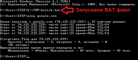BAT файл (также известный как пакетный файл или батник) это текстовый документ с расширением . BAT в котором записаны команды, которые нужно выполнить с помощью командной строки. При запуске такого файла запускается программа CMD, которая считывает команды с данного файла и последовательно выполняет их.