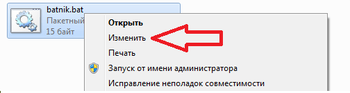 Кликните правой кнопкой мышки по BAT файлу и выберите пункт «Изменить». После этого запустится редактор Блокнот, в котором вы сможете отредактировать ваш BAT файл.