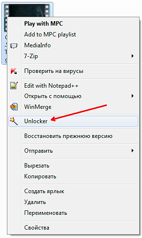 После установки программы нужно кликнуть правой кнопкой мышки по файлу, который не удаляется, и выбрать пункт «Unlocker».