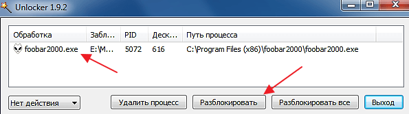 Выделите данную программу, нажмите на кнопку «Разблокировать» и проверьте, удаляется ли файл.