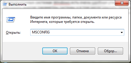 В операционных системах Windows есть очень удобная утилита под названием MSCONFIG. С ее помощью можно настроить многие параметры системы и в том числе удалить программы из автозагрузки. Для того чтобы ее запустить нужно вызвать меню «выполнить» (комбинация клавиш Windows + R) и ввести команду MSCONFIG.