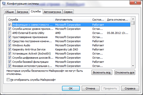 При работе с вкладкой «Службы» нужно быть осторожным. Отключение некоторых служб может повлекти нестабильную работу операционной системы. Поэтому лучше не отключать службы для которых указан изготовитель Microsoft Corporation. Тоже самое относится и к службам, которые установлены драйверами. В поле изготовитель, для этих служб, будет указано название компании производителя ваших комплектующих. Например, это может быть: Intel, Amd, Nvidia, Realtek.