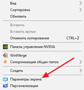 Для того чтобы уменьшить масштаб текста на компьютере нужно сделать всего пару кликов. Если у вас Windows 10, то вам нужно кликнуть правой кнопкой мышки по рабочему столу и перейти в «Параметры экрана».