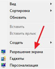 На компьютере с Windows 7 для уменьшения масштаба текста нужно кликнуть правой кнопкой мышки по рабочему столу и перейти в «Разрешение экрана».