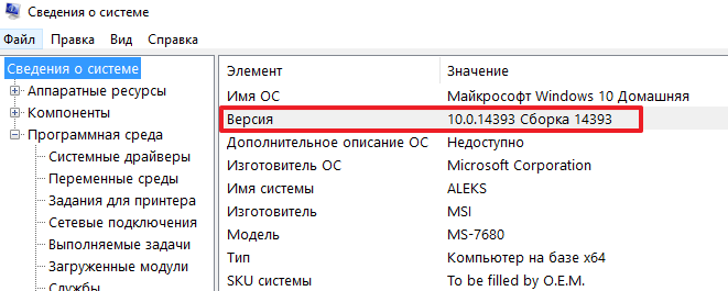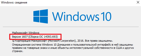 Здесь будет указана версия Windows 10 и номер ее сборки.