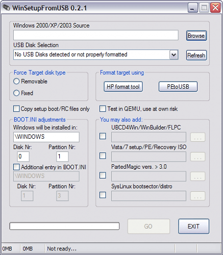 Также как и предыдущая программа, WinSetupFromUSB является бесплатной программой для создания загрузочной флешки. Данная программа имеет значительно больше возможностей и позволяет быстро создать мультизагрузочную флешку с возможностью инсталяции таких операционных систем как Windows XP, Windows 7, BartPE (WinBulder/UBCD4Win/WinFLPC), DOS, Linux и *BSD.