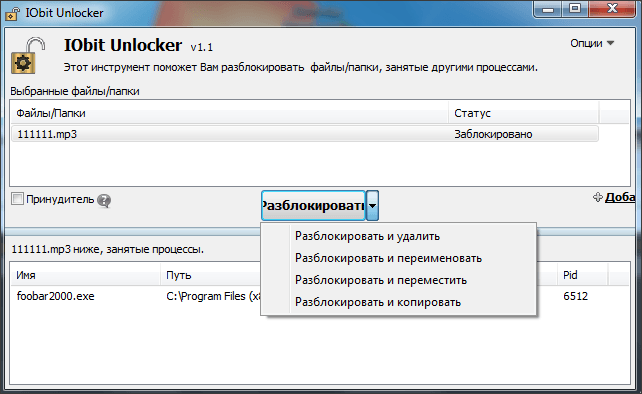IObit Unlocker – еще одна программа для удаления не удаляемых файлов. В отличие от Unlocker, данная программа не настолько известна, но, тем не менее, справляется со своей задачей не хуже. Программа IObit Unlocker также распространяется абсолютно бесплатно, вы можете скачать ее с официального сайта http://ru.iobit.com/iobit-unlocker/.