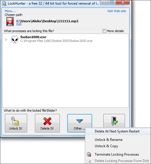 - Delete It – Программа удалит заблокированный файл.