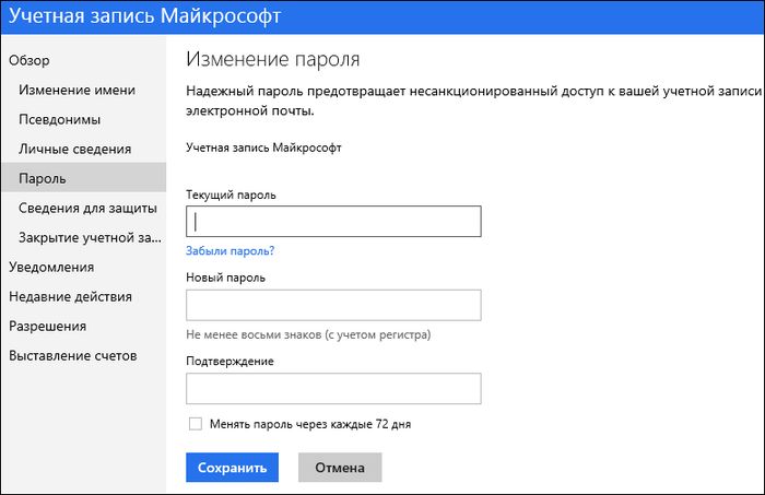 Чтобы, изменить пароль к учетной записи Microsoft, войдите в свою панель управления на сайте account.live.com.