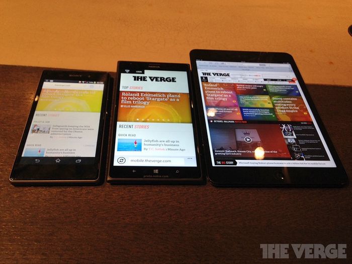 В конце этого месяца Nokia представит один из первых смартфонов с четырехъядерным процессором и Full HD дисплеем с 6-дюймовой диагональю. Пока мы ждем официальный анонс, на форуме The Verge появилась галерея с реальными фотографиями Lumia 1520, на которых он сравнивается со смартфоном Sony Xperia и iPad mini. Таким образом, вы можете получить представление о фактическом размере корпуса.