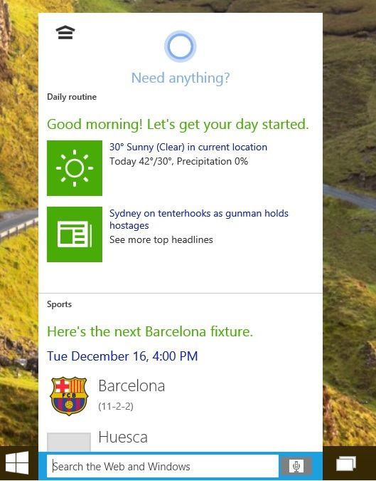 Пожалуй, одним из самых существенных нововведений в Windows 10 build 9901 является Cortana, цифровая помощница, работающая на панели задач с ее неповторимой круговой анимацией и звуками. И хотя в своем нынешнем виде функция далека от совершенства, уже сейчас мы можем получить приблизительное представление о том, какой будет Cortana в конечном итоге.