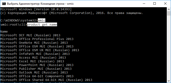 3. Выполняем «product get name» с целью получения списка продуктов, которые подлежат удалению через CMD.