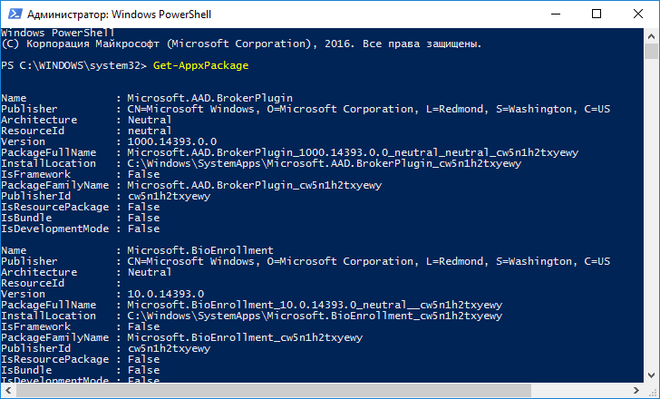 В «десятке» появился инструмент, обладающий большим функционалом, чем командная строка. Это PowerShell. Чтобы воспользоваться им, следует узнать системные имена пакетов, которые собираемся удалить.