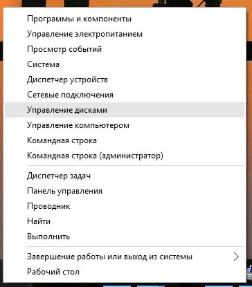 1. Итак, откройте инструмент Управление дисками. Для этого щелкните правой кнопкой мыши на кнопке Пуск (или просто нажмите + X) и в контекстном меню выберите пункт «Управление дисками».
