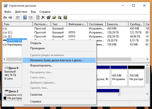 2. В списке дисков найдите ваш внешний носитель, откройте контекстное меню и выберите «Изменить букву диска или путь к диску».