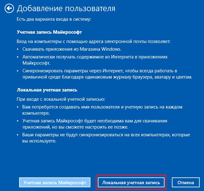 P.S. Чтобы создать локальную учетную запись непосредственно во время установки операционной системы, просто лишите компьютер доступа к интернету. В этом случае система не будет требовать, чтобы вы вошли с использованием учетной записи MS.