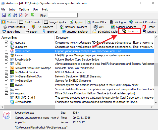 Для очистки автозагрузки и отключения служб лучше всего установить бесплатную программу Autoruns, которую можно скачать с сайта Майкрософт.