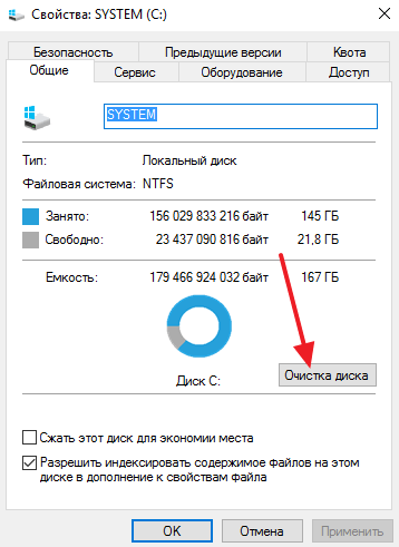 Для того чтобы освободить место на системном диске обычно достаточно перенести пользовательские файлы с рабочего стола, папки «Мои документы» и «Загрузки» на другой диск. Если же этого не хватает, то можно сделать очистку диска. Для этого нужно открыть свойства системного диска и нажать на кнопку «Очистка диска».