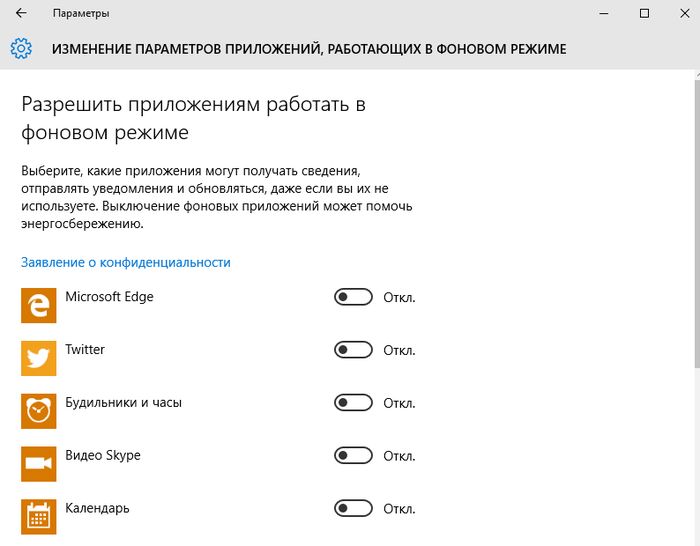 Дополнительно можно отключить фоновую работу второстепенных программ, таких как Twitter, Календарь, Будильник и часы, Телефон и прочих, если, конечно, вы ими не пользуетесь.