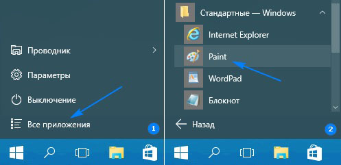 После копирования изображения в буфер запускаем Paint (через Пуск → Все приложения → Стандартные или выполняем команду «mspaint» в поисковой строке/командном интерпретаторе).