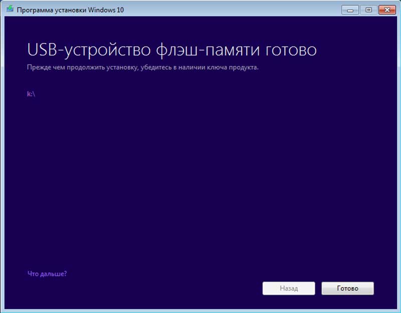 Если процесс будет успешно закончен, то вы получите загрузочный носитель с дистрибутивом. Его можно будет сразу же вставить в требуемый компьютер и запустить установку при помощи файла «setup.exe». Потребуется повторять все те же действия, что были описаны выше. Обновление пройдёт успешно, если все параметры были правильно выставлены.