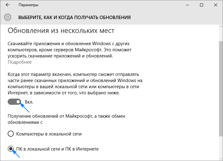 Есть возможность выбора способа загрузки обновлений, один из которых представляет собой пиринговую сеть.