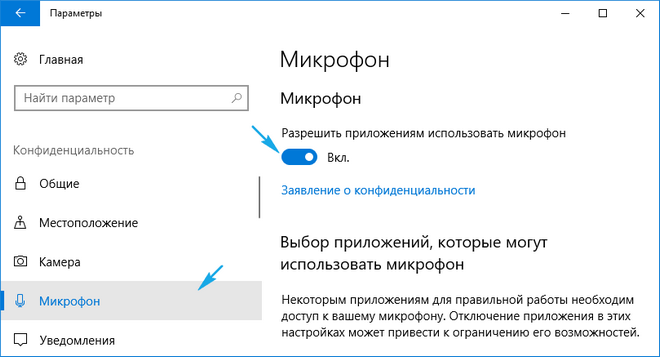 4. Разрешаем приложениям обращаться к устройству записи звука.