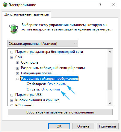 Для компьютера рекомендации будут теми же: запрещаем сетевой плате выводить устройство с режима сна и деактивируем таймеры пробуждения. Затем, если это не помогло, выполняем ручное обновление всех драйверов, загрузив их с официальных ресурсов поддержки соответствующих устройств. При сложностях с обновлением программного системного обеспечения, касающегося графического адаптера, следует прибегнуть к помощи приложения Display Driver Uninstaller.