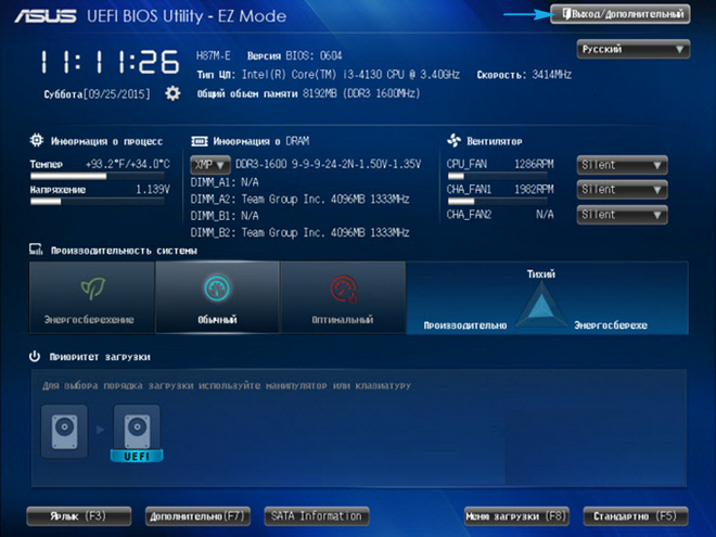 Во многих UEFI опция сброса настроек размещается в меню «Выход».