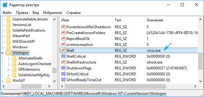 Данный ключ отвечает за запуск графической оболочки, которую, вероятно, подменил собой вирус.