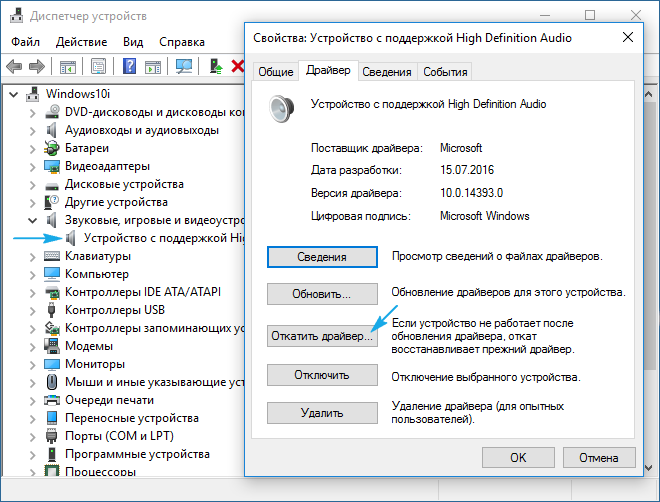 4. Нажимаем «Откатить драйвер» и подтверждаем выполнение операции.