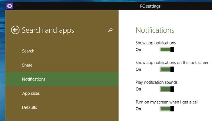 Если вы хотите изменить настройки уведомлений, перейдите в PC Settings > Search and apps > Notifications.