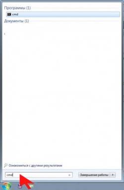 - в меню «Пуск», в строке поиска ввести команду cmd;
