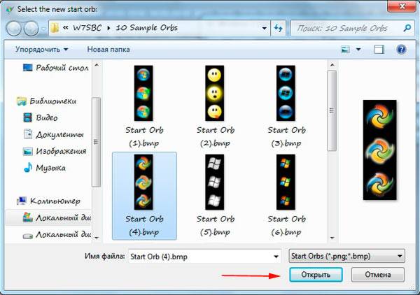 Установка большинства тем не изменяет кнопку ПУСК. Этот элемент в виде шара с цветными квадратиками многие хотели бы видоизменить. Чтобы сделать это потребуется воспользоваться специальным программным обеспечением. Рассмотрим на примере Start Orb Changer.