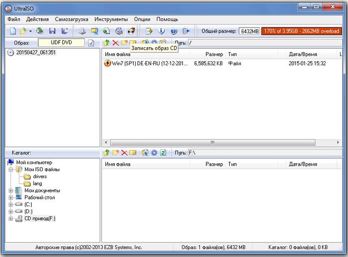 Для начала процесса установки нужен диск с Windows 7. При его наличии можно смело переходить к следующему шагу. Если он отсутствует, то сначала его придется создать. Понадобится образ операционной системы, а также программа для записи. Лучше всего отдать свое предпочтение «чистым» MSDN сборкам, которые не были сильно модифицированы. Запись с образа ничем не отличается от работы с обычным диском. Сделать это можно, например, программой UltraISO.