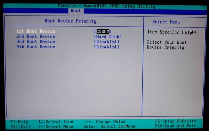 Установка Windows 7 с диска через Биос