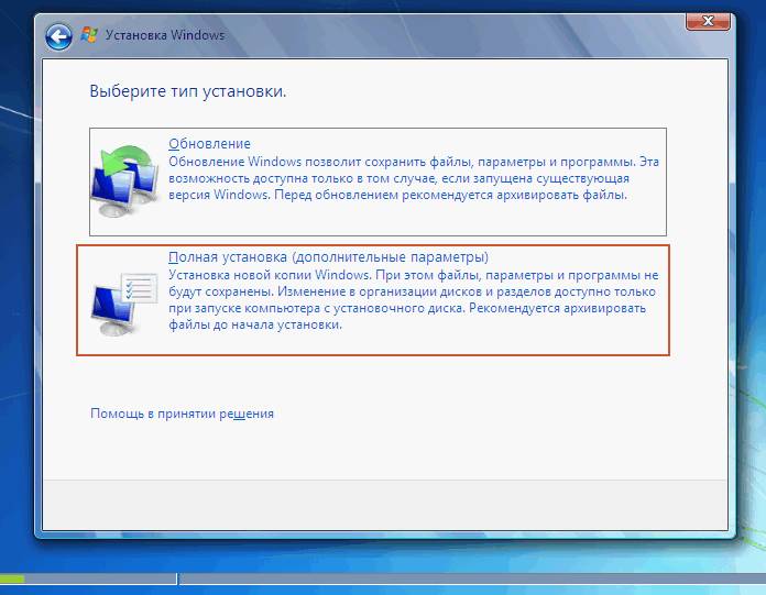 - в новом окне выбираем «Полная установка»;