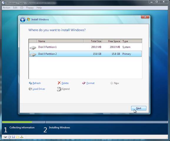 - указываем раздел, куда будет установлена новая операционная система;