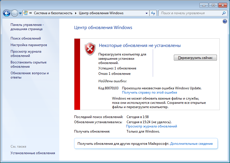 К сожалению, но иногда данная автоматизированная процедура дает сбой. Например, появляется сообщение «80070103 – ошибка обновления Windows 7».