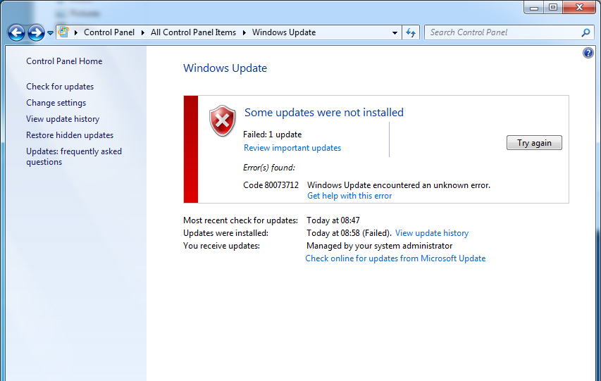 Код ошибки 0x80073712 на Виндовс 7 и 10 сигнализирует пользователю, что автоматическая служба обновления операционной системы пыталась выполнить свою работу, но задуманная операция не была завершена успешно, так как важнейший файл, предназначенный для хранения подобных пакетов, имеет повреждения.