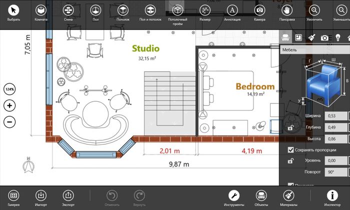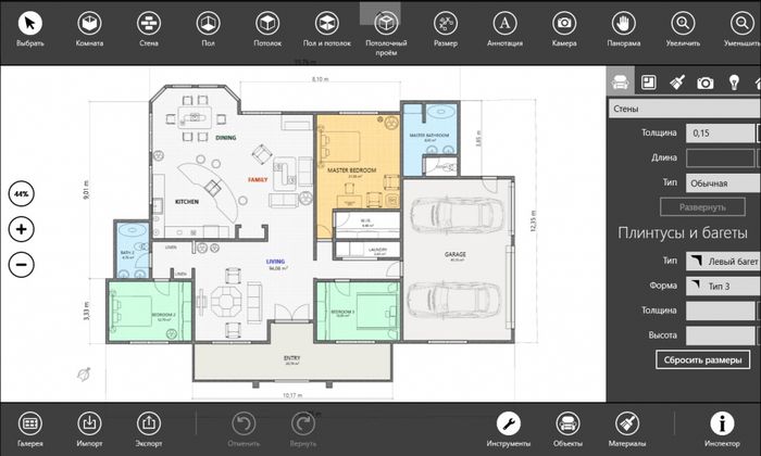Создавайте различные проекты: от отдельных комнат до целого дома или офиса.