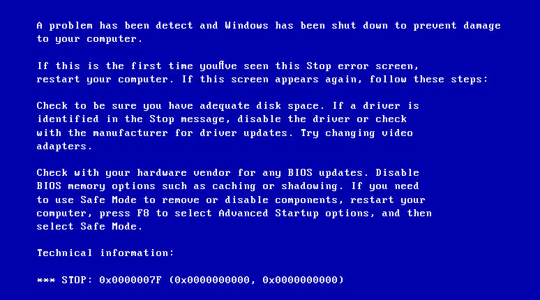Перед тем, как приступить к решению поставленной задачи, желательно знать хотя бы приблизительные причины ее появления. Ошибка 0x0000007f Windows xp (7) может возникнуть: