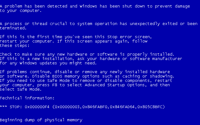 Существует несколько вариантов причин, которые могут вывести на монитор синий экран смерти 0x000000f4. Подобный код ошибки может означать: