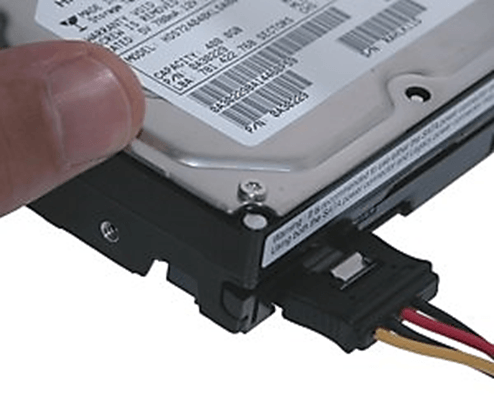 Также к блоку питания нужно подключить какое-нибудь устройство. Например, привод оптических дисков или старый ненужный жесткий диск (фото внизу). Это делается для того чтобы не включать блок питания без нагрузки так как это может привести к его поломке.