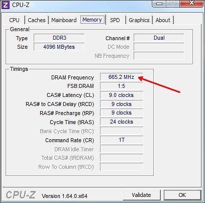 В нашем случае реальная частота оперативной памяти составляет 667 МГц, следовательно, эффективная (удвоенная) частота составляет 1333 МГц, а название оперативной памяти DDR3-1333. Как правило, в интернет-магазинах указывают эффективную частоту памяти или название оперативной памяти. Поэтому, если вы планируете покупать новые модули памяти, то нужно ориентироваться именно на эти характеристики.