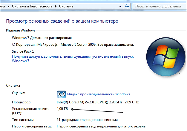 После этого перед вами откроется окно, в котором можно узнать основные сведения о вашем компьютере. В разделе «Система» будет указан объем оперативной памяти, который доступен операционной системе.
