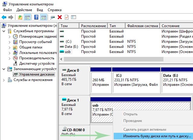 Эта проблема также является конфликтом. Конфликтуют разделы. Поначалу все происходит в нормальном режиме. Флешка подключается, система ее распознает и появляется характерный звук. Снизу на панели задач появится правильный значок, но устройству не присваивается буква.