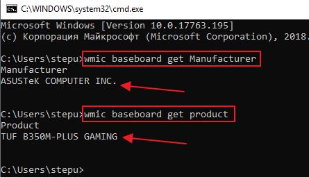 Также информацию о названии материнской платы можно получить при помощи команд «wmic baseboard get Manufacturer» и «wmic baseboard get product». Первая команда выводит название производителя платы, а вторая точное название модели. Вводить данные команды нужно в командную строку (cmd).