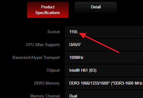 После этого изучите характеристики материнской платы и найдите там информацию о сокете.