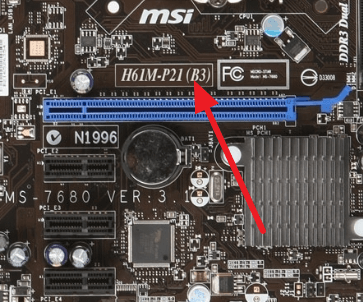 Если же материнская плата у вас на руках и рабочего компьютера на ее основе нет, то вам нужно внимательно осмотреть материнскую плату на наличие различных надписей. Обычно название модели материнской платы напечатано на самой плате где-то между сокетом процессора и разъемом PCI Express x16.